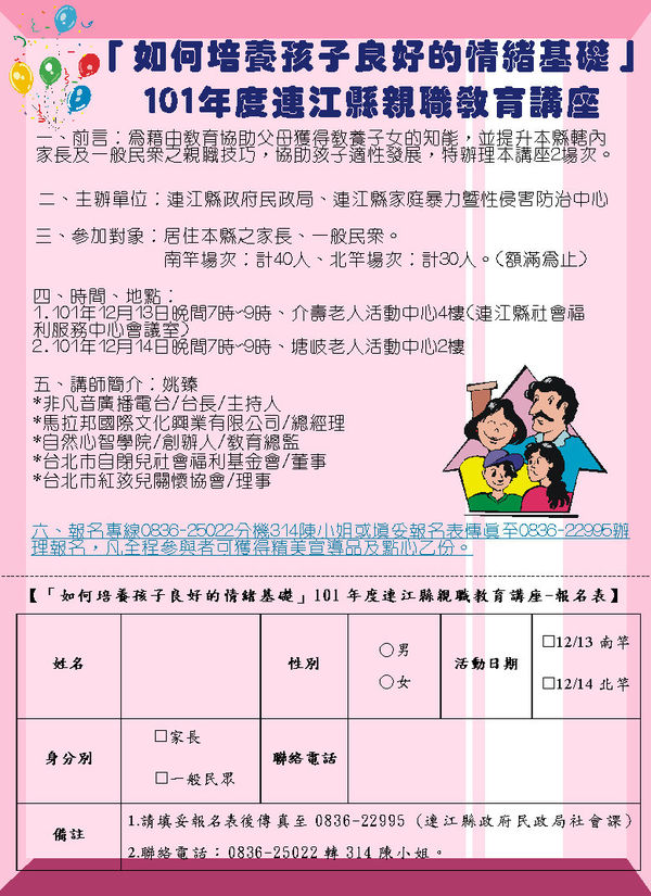 「如何培養孩子良好的情緒基礎」-101年度連江縣親職教育講座