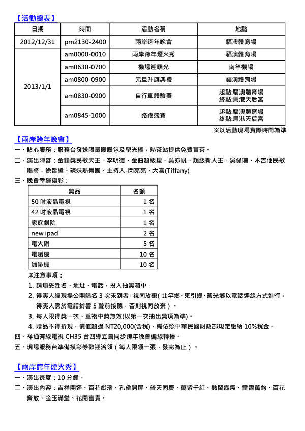 2013卡蹓馬祖瘋跨年 系列活動介紹