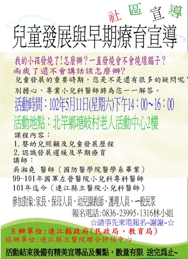 102年度兒童發展與早期療育宣導