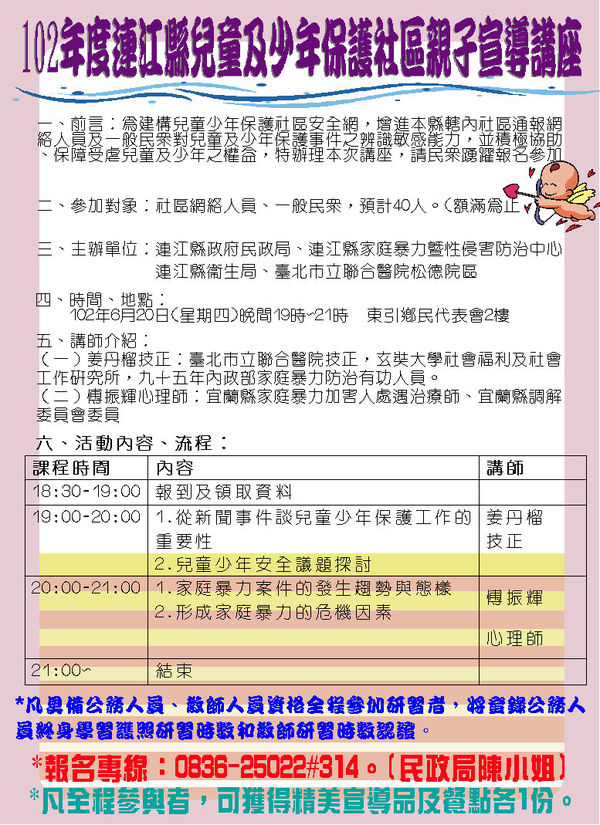 兒少保護社區親子宣導東引講座開放報名