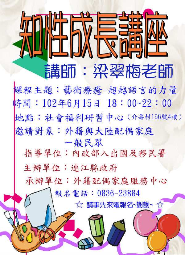 外配中心辦理「知性成長講座」