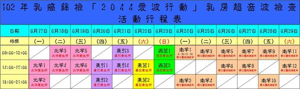 102年乳癌篩檢「2044愛波行動」乳房超音波檢查活動