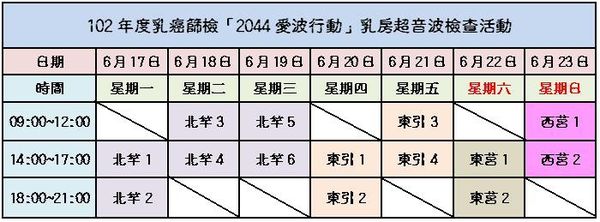 102年乳癌篩檢「2044愛波行動」乳房超音波檢查活動