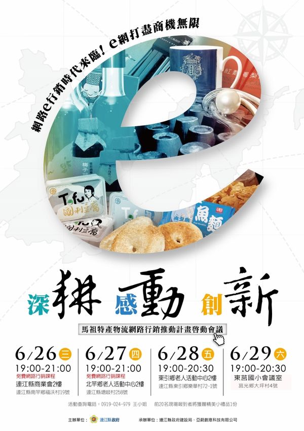 今日(6/26)啟動會議場地在南竿商業會2樓(南竿鄉福沃村19號),時間為晚上七點到九點鐘,現場並有免費的網路行銷課程,特別請來台灣知名網站-大台灣旅遊網的花總監現場教學,機會難得,說明會現場並提供諮詢服務,前20名現場報到者,將獲贈精美小禮品1份,請大家踴躍參加。