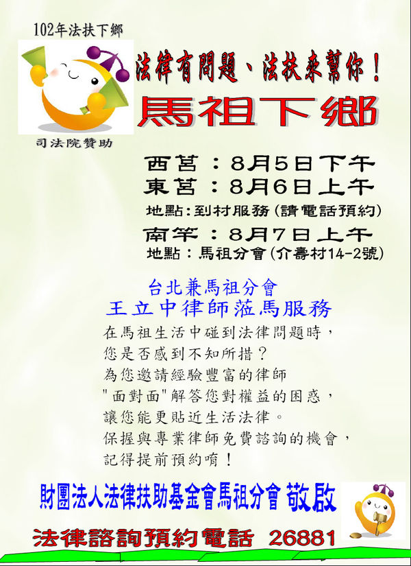 法扶下鄉--8/5西莒 8/6東莒 8/7南竿