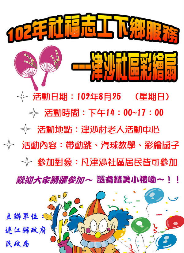 本周日~社福志工津沙社區彩繪扇活動