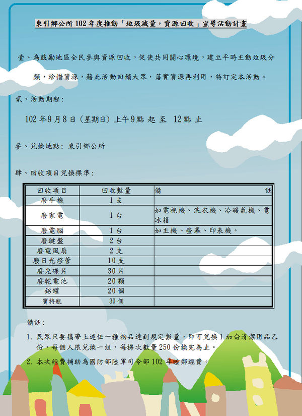東引鄉9月8日辦理資源回收兌換宣導品活動