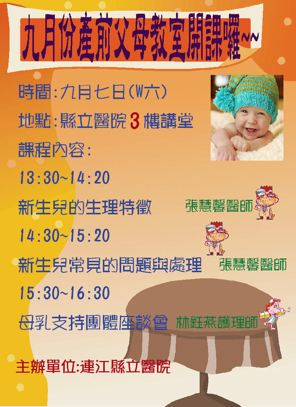 連江縣立醫院產前父母教室備有精美禮品(數量有限,送完由其他禮品代替),歡迎準父母一起參加!!