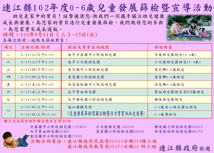 102年度0-6歲兒童發展篩檢暨宣導活動
