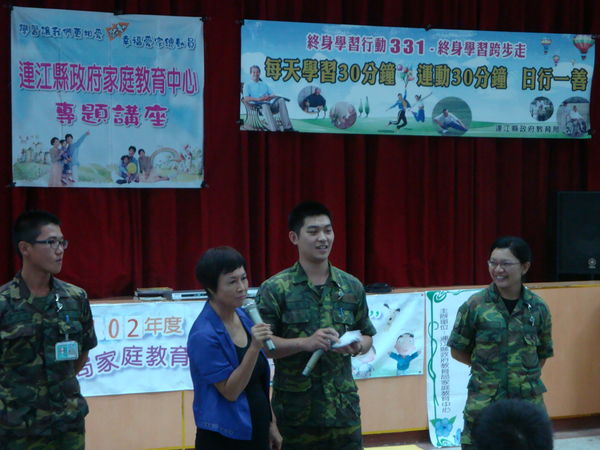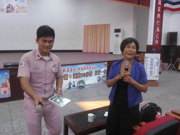 這二場講座,社教課邱桂惠課長也向參與的軍民宣導「終生學習331」,每天學習30分鐘、運動30分鐘、日行1善。