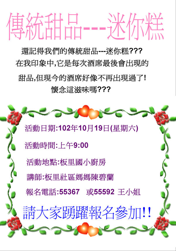 傳統甜品---迷你糕製作活動,請踴躍參加!!
