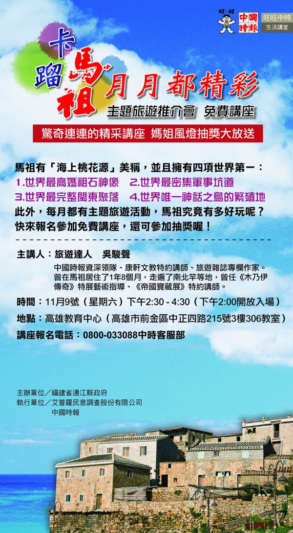 馬祖旅遊講座-高雄場(旅遊達人吳駿聲)