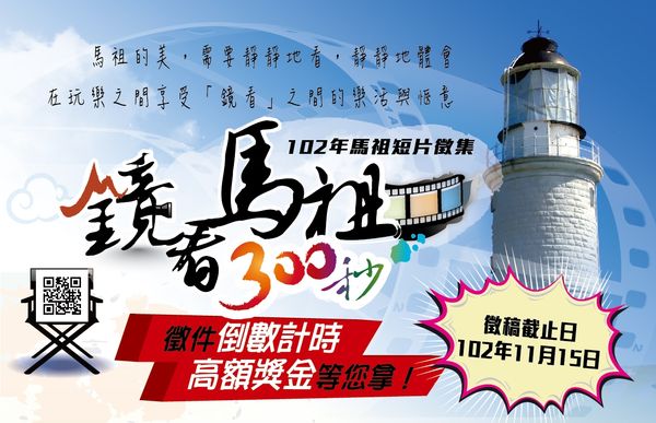 今年馬祖的微電影競賽已風光落幕,參賽與得獎影片,也在網路上引起不小的迴響。強調以馬祖的文化意象為主題,形式不限、設備不限,文化局在9月起也展開馬祖短片徵集的競賽活動,活動主題為「鏡看馬祖300秒」。