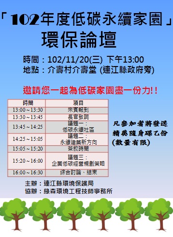 「102年度低碳永續家園」環保論壇 --閱讀人次 : 968