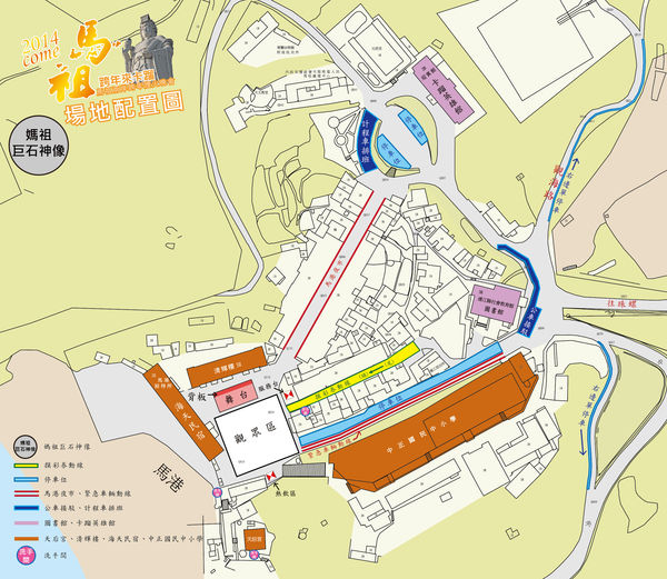 1.黃色為摸彩券排隊動線(馬港舊街)