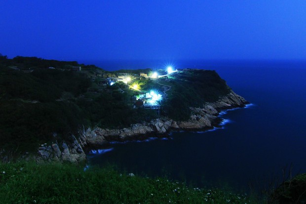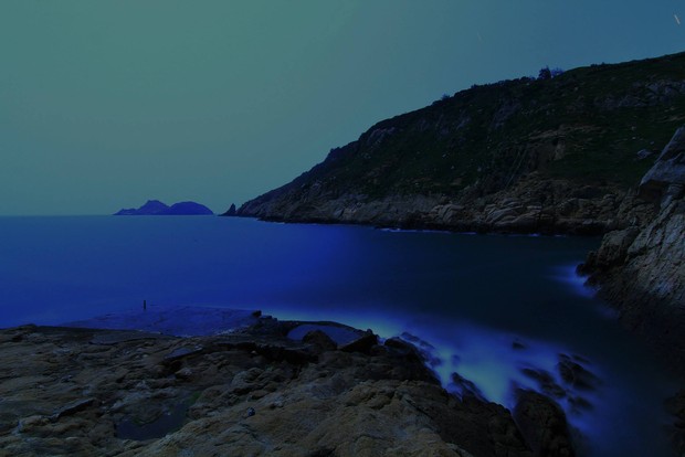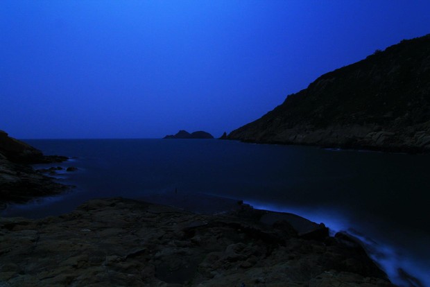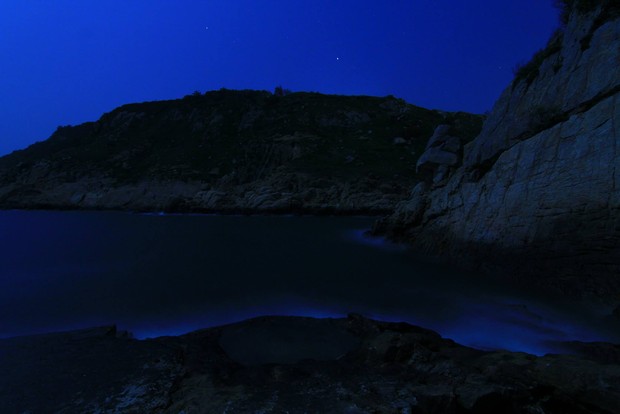 昨天回到家鄉莒光的曹祥官,上午在青帆村拍到一張有意思的「青天紅日」防空洞照片,下午轉往東莒,晚間在土生土長的大埔村,又拍到微量的藍眼淚。可惜月亮太亮,但已經有以下的成績。