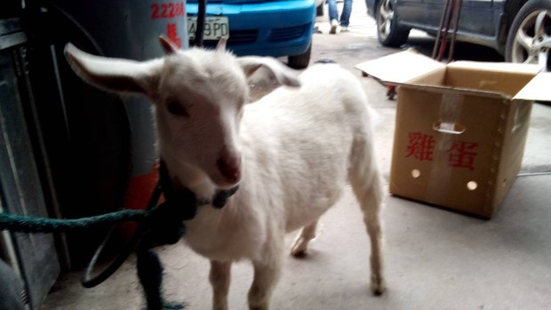昨天開車經過看到白色小羊,地點是:環保路,環保局後方-土石資源回收場咖啡色大鐵門內(羊原本在馬路外看到車經過時進入的)