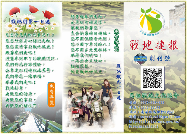 說明:本會決定自103年5月4日起試辦【戰地行軍 悠遊馬祖】散客健行免費導覽活動,歡迎各地貴賓和鄉親踴躍報名參加。