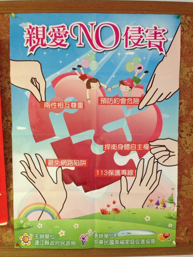 為落實連江縣性侵害防治宣導,主辦單位~連江縣政府民政局委託中華民國幸福家庭促進協會於5月19日至5月26日至連江縣四鄉五島之高中、國中小、幼兒園共計17場次校園宣導,辦理17所校園宣導講座,透過專業講師之演講,傳遞性侵害防治觀念,提升兒童及少年自我保護意識。