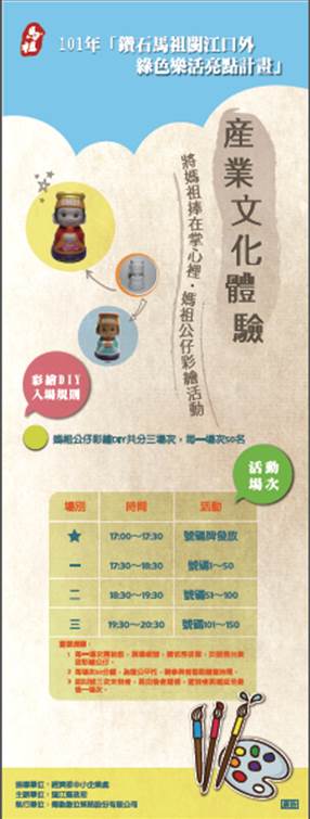 馬祖博弈公投二週年媽祖公仔彩繪、我是骰子王 --閱讀人次 : 1081 將媽祖捧在掌心裡 媽祖公仔彩繪活動