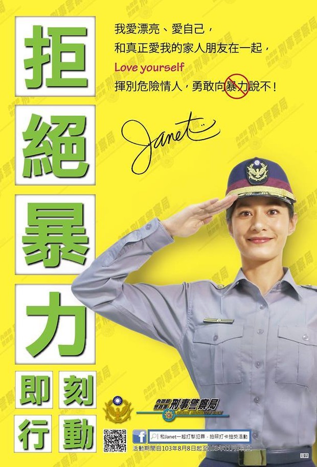 預防犯罪臉書打卡和Janet一起打擊犯罪 --閱讀人次 : 1009 自103年8月8日起至11月9日止,只要拿起您的手機,於警察局、各分局及分駐(派出)所與「打擊犯罪 即刻行動」系列海報合照,並將照片上傳至https://www.facebook.com/JanetHsiehSWAT?fref=t「和Janet一起打擊犯罪」臉書活動專頁並打卡(地標為所在警察單位),即可參加抽獎。