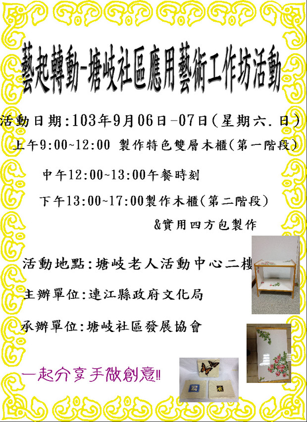 辦理「藝起轉動-塘岐社區應用藝術工作坊活動」