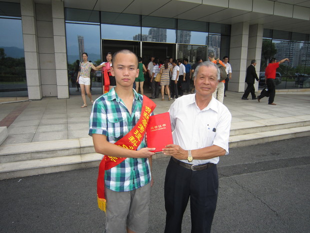 5.得獎第一名學生邱孫傳錄取北京大學與陳寶佺監事合影留念