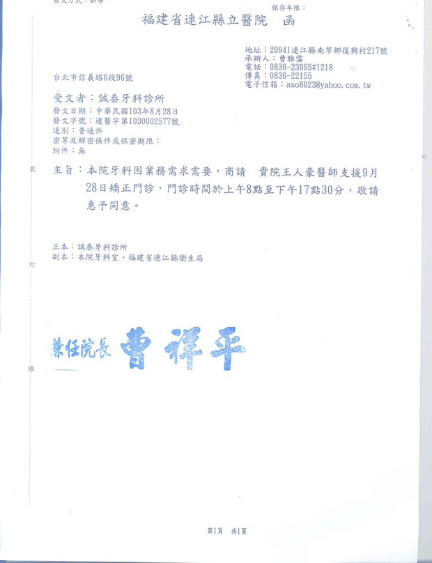 連江縣立醫院九月矯正門診時間