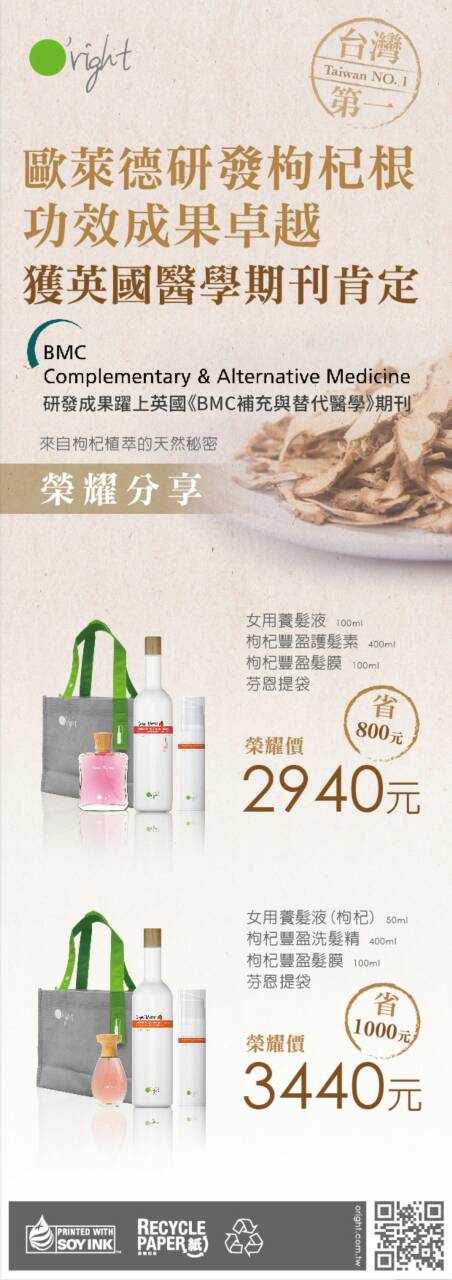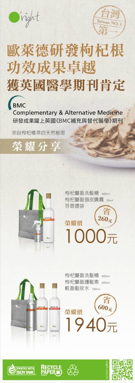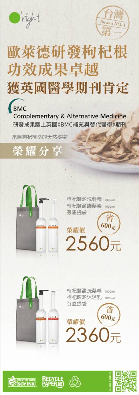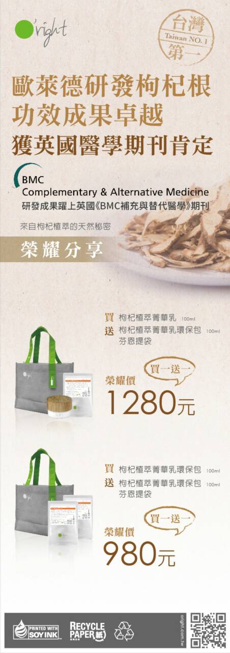 歐萊德-枸杞系列優惠活動!! --閱讀人次 : 1301 歐萊德研發枸杞根功效成果卓越,獲得英國醫學期刊肯定