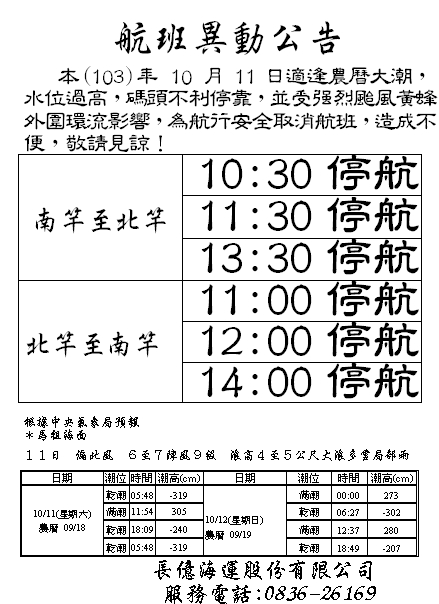 取消開航,造成不便,敬請見諒!