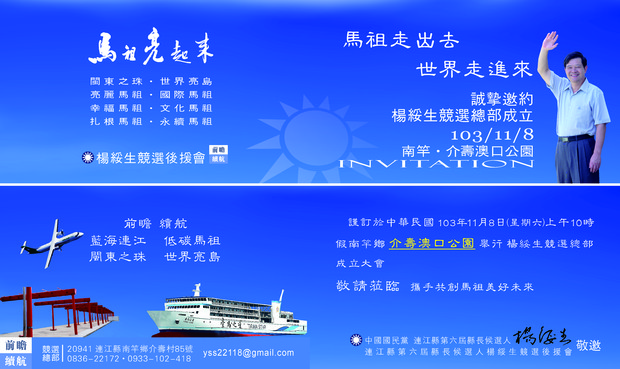 謹訂於103年11月8日(星期六)上午10時 藉南竿鄉介壽澳口公園舉行