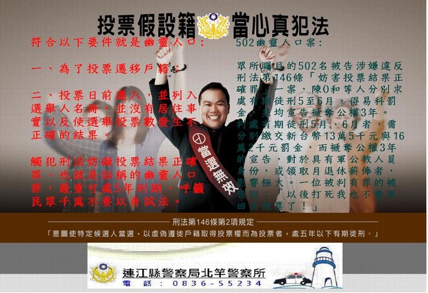 眾所矚目的502名被告涉嫌違反刑法第146條「妨害投票結果正確罪」一案,金門地方法院連江庭做出判決: 陳○和等人分別求處有期徒刑5至6月,得易科罰金,並均宣告褫奪公權3年,鄉長與縣議員選舉返鄉投票者,加重判處有期徒刑6月。