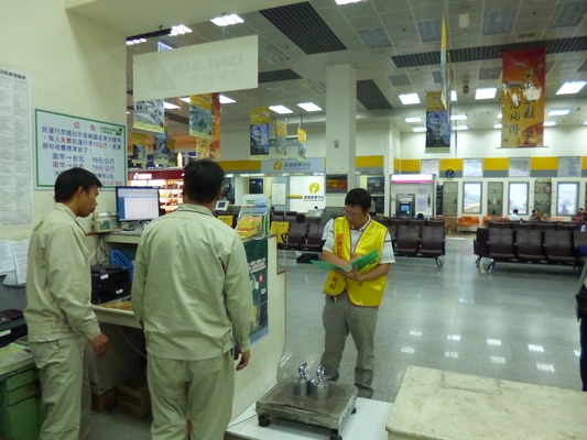 為確保航空公司使用行李秤重磅秤計量準確,以保障消費權益,標準檢驗局基隆分局馬祖辦事處於今(103)年11月12日,分別至南竿及北竿航空站使用之行李秤重磅秤辦理檢查,南、北竿航空站均為立榮航空駐地服務,所使用衡器規格各為電子式(300Kg)1台、機械式(200Kg)1台,合計4台,經檢查後全數合格。