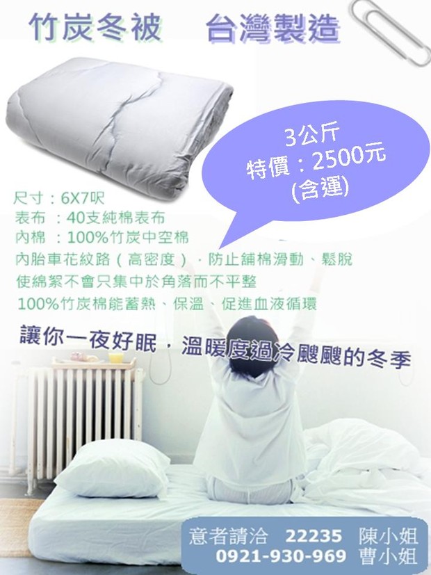 竹炭冬被 溫暖上市