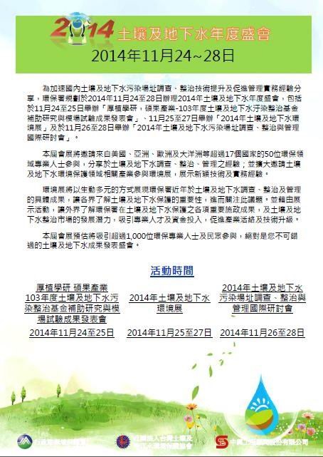 「2014土壤及地下水年度盛會-環境展」歡迎踴躍參觀