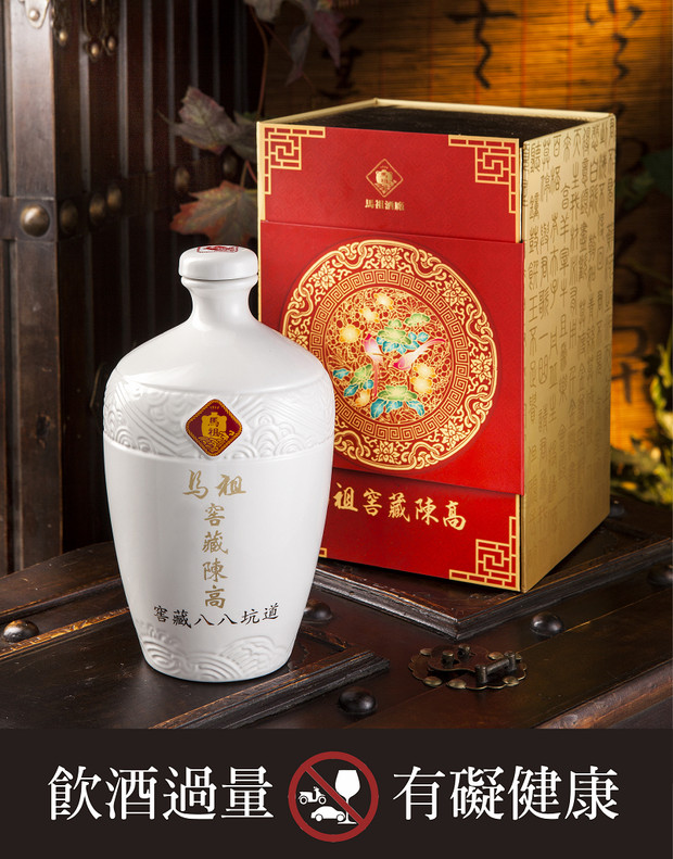 具傳統罈裝酒器美感的「馬祖窖藏陳高禮盒」,瓷瓶採用上好瓷土製作,所灌裝的馬祖陳年高粱酒,催陳效果良好,經過時間的窖藏存放,口感更加醇厚清香,吉祥喜氣的禮盒包裝,更是您年節贈禮、分享好友的經典佳釀選擇。