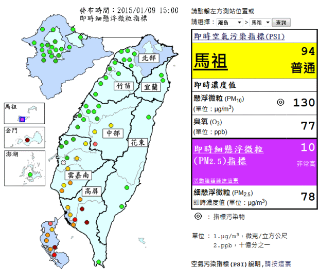 馬祖空污「紫爆」 今天PM2.5達最高10級! --閱讀人次 : 689