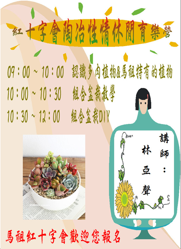 組合盆栽 開始報名囉~ (報名額滿) --閱讀人次 : 1273 紅十字會陶冶性情休閒育樂營