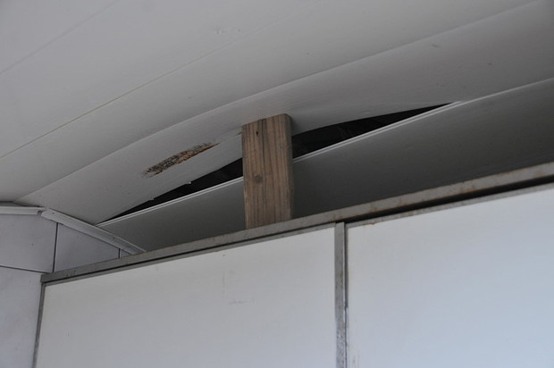 橋仔公廁天花板掉落 村民自力救濟拿木板先撐一下 --閱讀人次 : 759