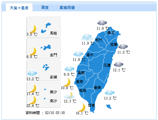 中央氣象局表示,今天寒流將稍微減弱,為多雲時晴的天氣,明天最低溫度將回升到9度,但一週內都將維持最低溫9至10度,天氣仍然寒冷,最近一週內都要做好保暖禦寒措施,使用瓦斯及熱水器具也請注意通風,避免發生危險。