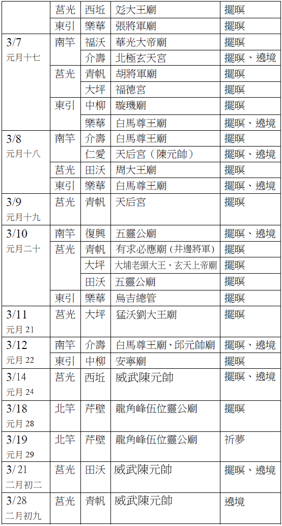 備註:各廟宇擺暝與遶境日期若有變動,煩請通知本站。
