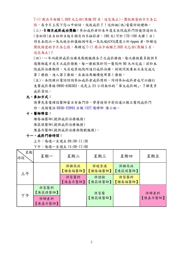 詳情請洽0836-23995分機1327護理部 陳小姐。