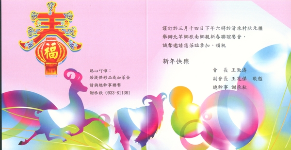 熱烈歡迎北竿旅南鄉親踴躍攜伴參加,若有發現邀請卡漏發,請鄉親大家告訴大家一起來熱鬧!