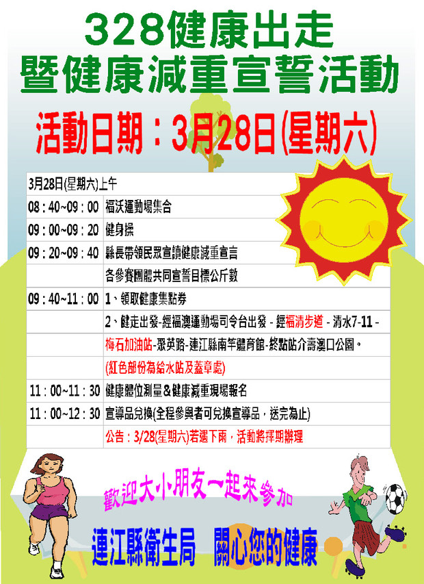 衛生局邀請鄉親328(星期六)健走活動