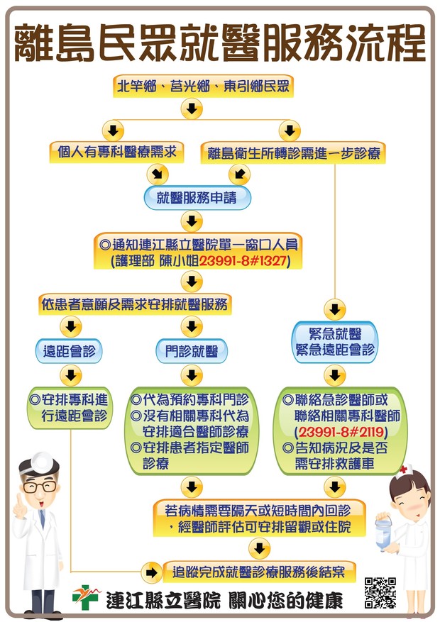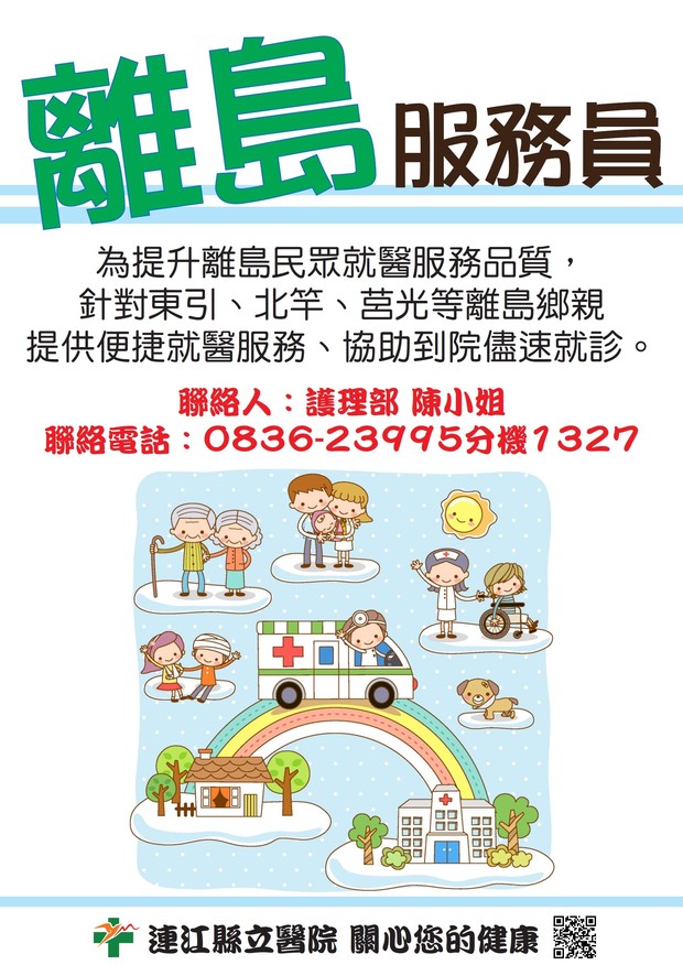 九十五年為提升離島地區醫療水準爭取診治時效,與台北市立聯合醫院合作提供遠距醫療會診諮詢,各衛生所與縣立醫院及台北市立聯合醫院均可進行會診。外島如有營養衛教需求,也可利用本院遠距視訊獲取更完善營養諮詢衛教喲!