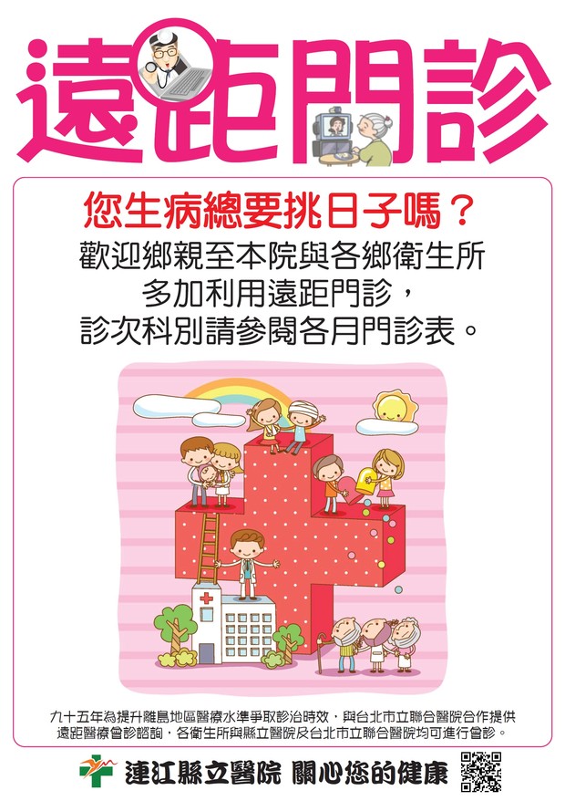 歡迎鄉親至本院與各鄉衛生所多加利用遠距門診,診次科別請參閱各月門診表。