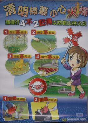 三、 在墓地不要燃放爆竹煙火,以免火花飛散引起火災。