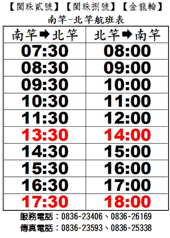 以及 北竿至南竿 14:00、18:00 航班