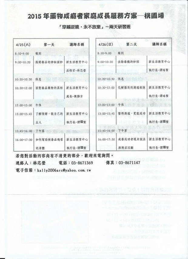 2015藥物成癮者家庭成長服務方案-桃園場