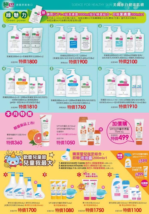 B:泡泡露1000ml x2 +嬰幼兒洗髮乳500mlx1 或 嬰幼兒乳液400ml x1 $1700